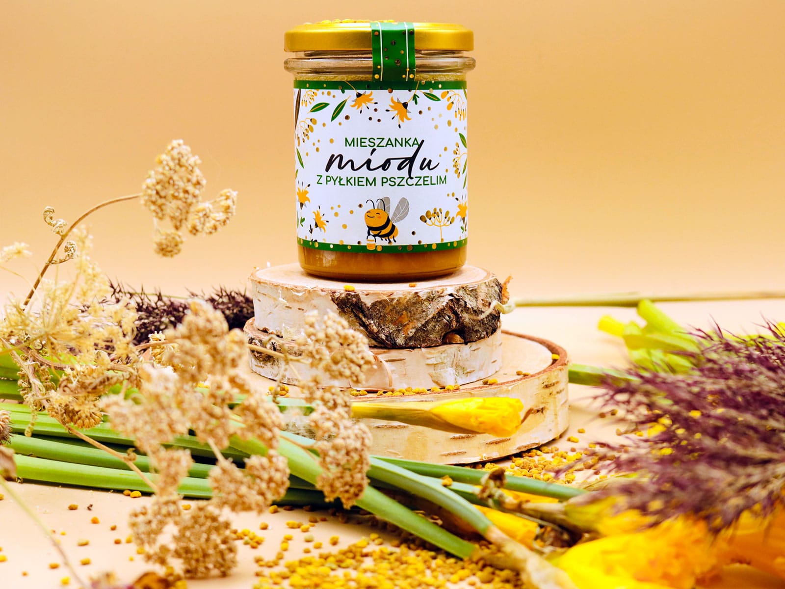 MIESZANKA MIODU PSZCZELEGO NEKTAROWEGO WIELOKWIATOWEGO KREMOWANEGO ZDODATKIEM PYŁKU PSZCZELEGO